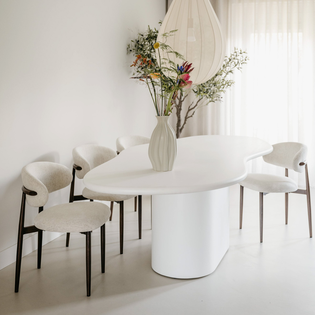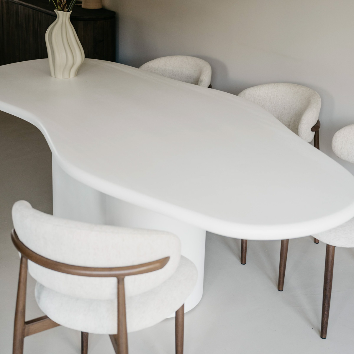 Der Athens Organic Dining Table kombiniert Handwerkskunst mit einem verspielten, zeitgenössischen Look. Dieser stilvolle Tisch wird mit einer handwerklichen Gipstechnik auf Zementbasis hergestellt, wodurch eine robuste und nahtlose Oberfläche entsteht, die in ihrer Härte an Naturstein erinnert. Das Ergebnis ist ein elegantes und langlebiges Designerstück, das sowohl in moderne als auch in industrielle Interieurs perfekt passt. Dank seiner organisch geformten Platte und dem massiven zylindrischen Fuß strahlt der Tisch Raffinesse und Dynamik aus. Ein echter Blickfang, der mühelos Funktionalität und kreatives Design verbindet.