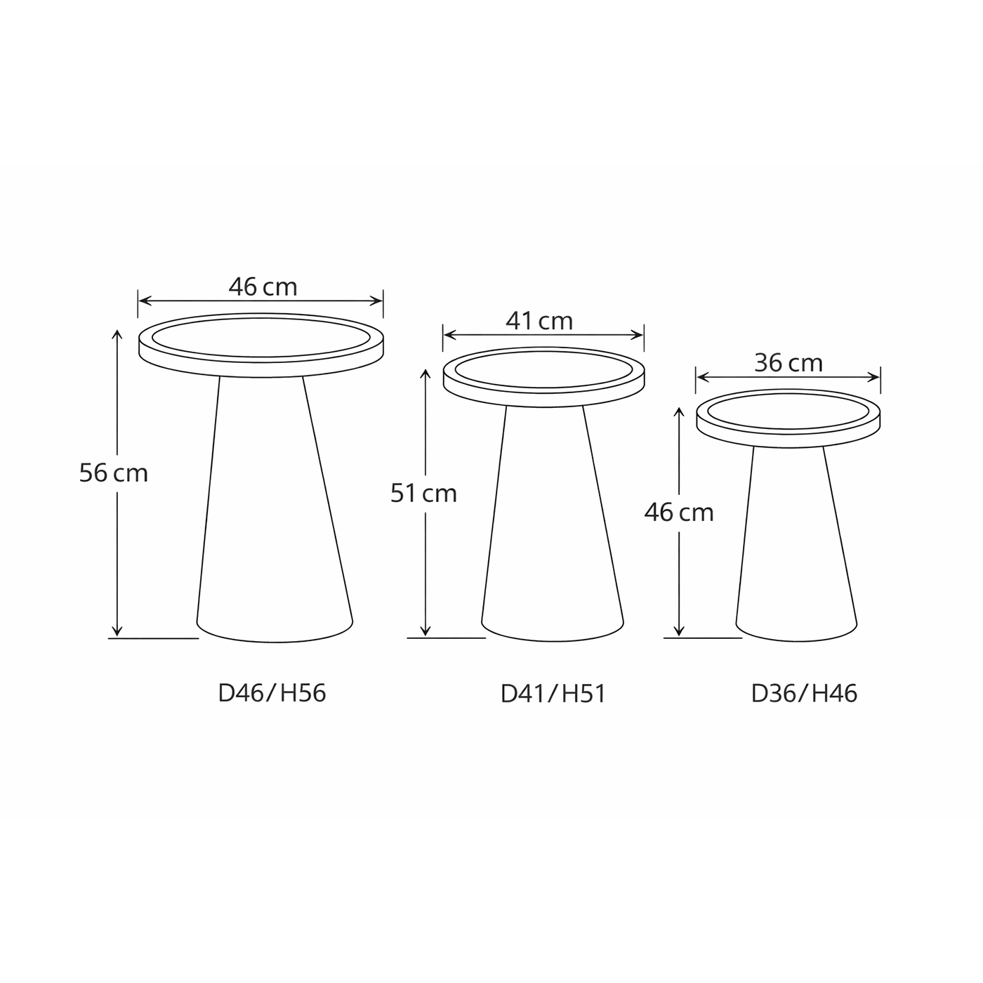 | Hauteur | 46 cm, 51 cm, 56 cm |