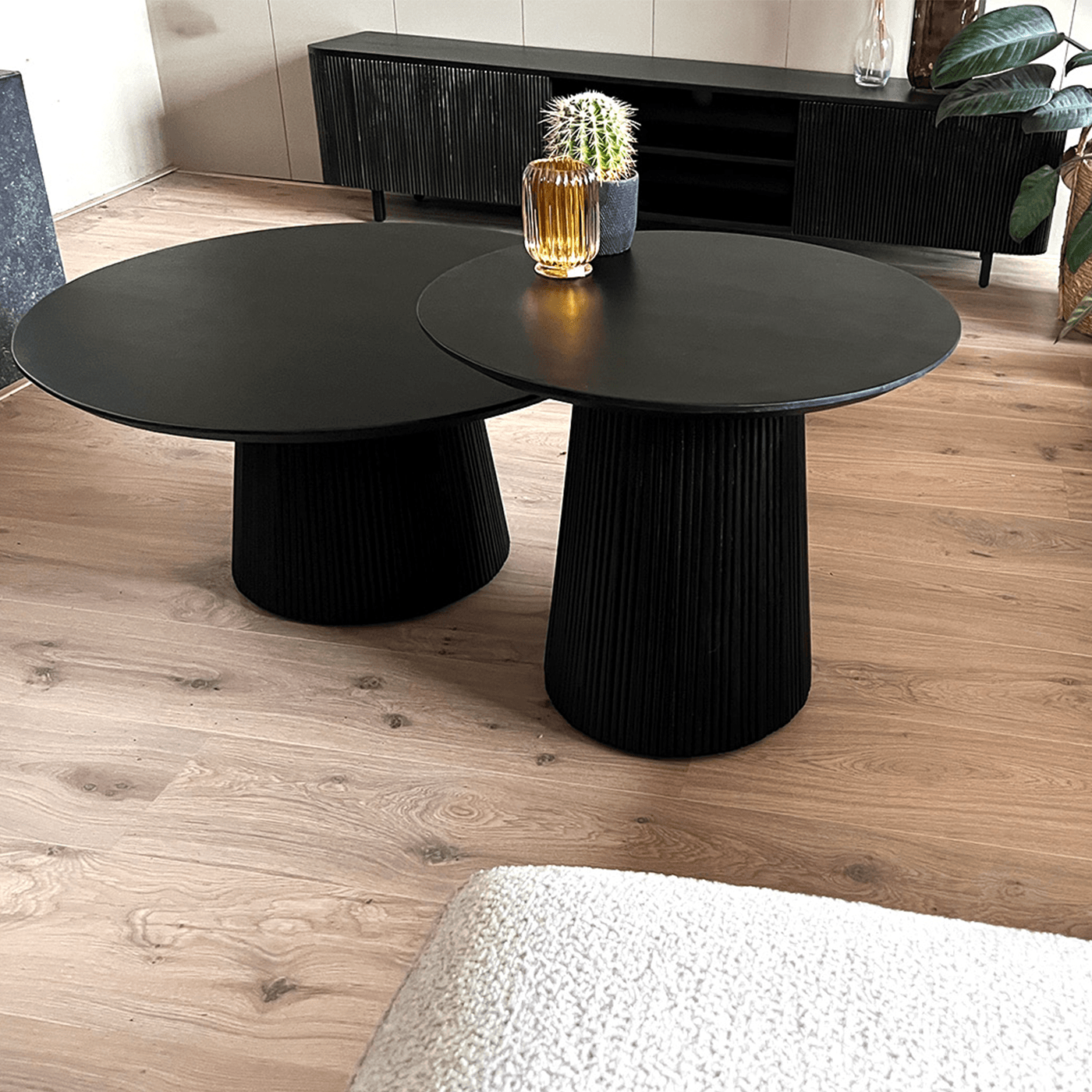 Vous cherchez une table basse avec du style ? Optez pour notre ensemble de tables basses Rome. Cet ensemble de deux tables se distingue par ses formes rondes raffinées et est fabriqué en bois de manguier de haute qualité, dans une élégante couleur noire. Les tables ont un diamètre de 60 cm et 80 cm et reposent sur de solides pieds ronds en bois. Cet ensemble élégant, qui attirera tous les regards dans votre salon, offre une combinaison parfaite de fonctionnalité et de design. Pour un intérieur cohérent, vous pouvez également jeter un coup d’œil à l’ensemble de notre série Rome.