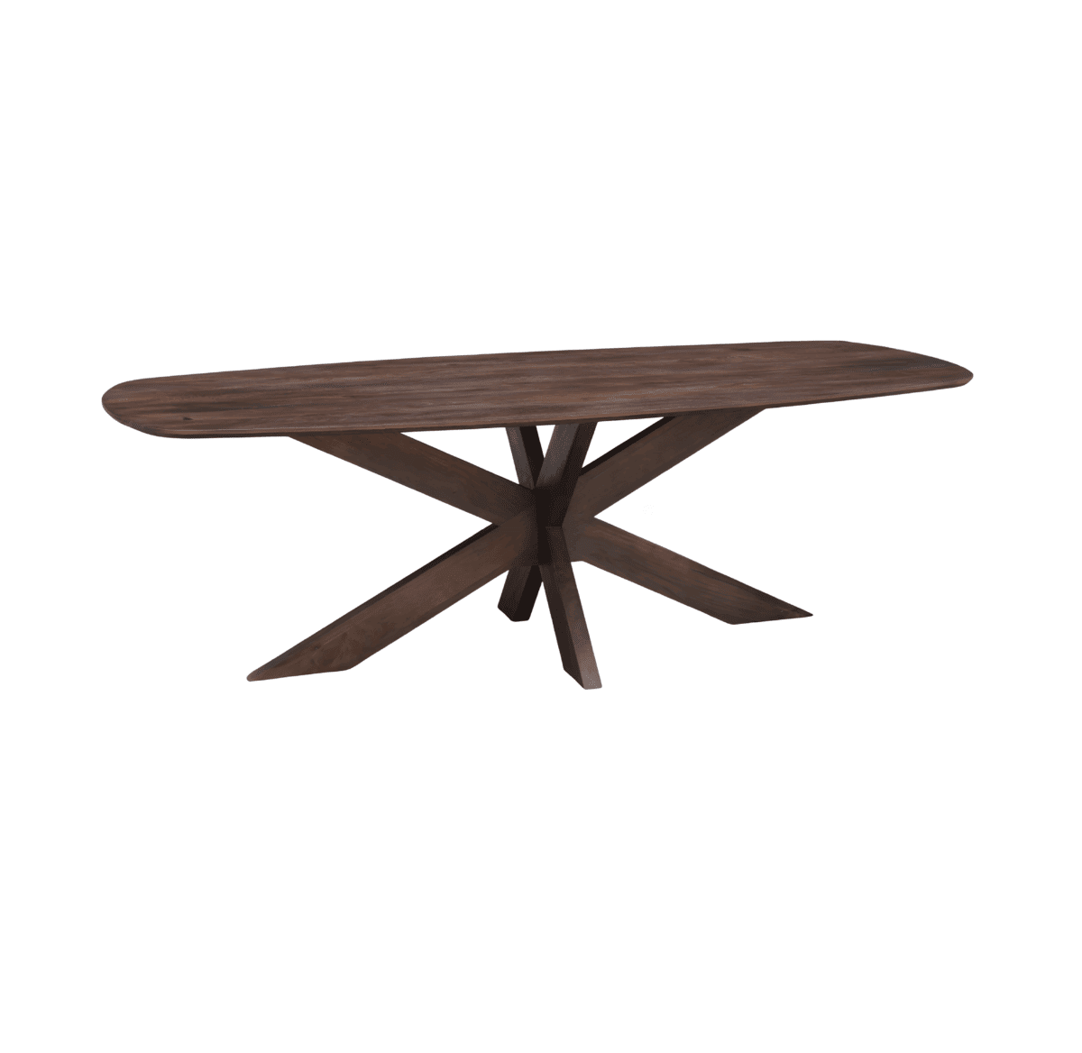 De Hamburg eettafel 200×110 cm biedt ruimte aan 6 personen. Het ovale blad van massief mangohout in brown finish wordt gedragen door stevige kruispoten van 50 mm dik. Een robuuste tafel met Scandinavische charme.