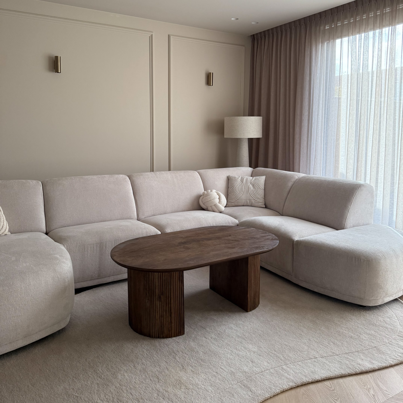 Met een lengte van 120 cm biedt de salontafel Luca voldoende ruimte voor het plaatsen van decoratieve items, boeken, tijdschriften en dranken. De Deens ovale vorm maakt het gemakkelijk om rondom de tafel te bewegen en draagt bij aan een comfortabele en ontspannen sfeer in uw woonkamer.